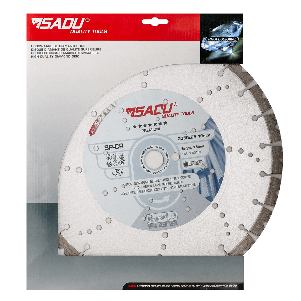 Demantssagarblað 350mm 25,4mm 15mm er blað fyrir steinsög og aðrar fastar vélar þar sem 350 mm og 25,4 mm gat eiga við (demantssagarblað 350mm 25,4mm 15mm).