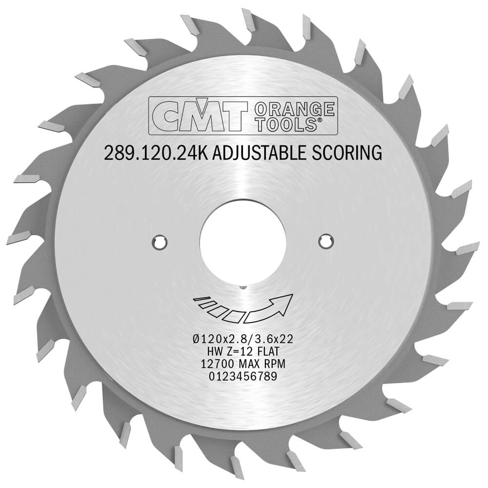 Forskurðarblað 120mm 22mm Z24 fyrir forristun til að minnka flísun. Athugaðu hvort þetta passi í ristaeiningu vélar.