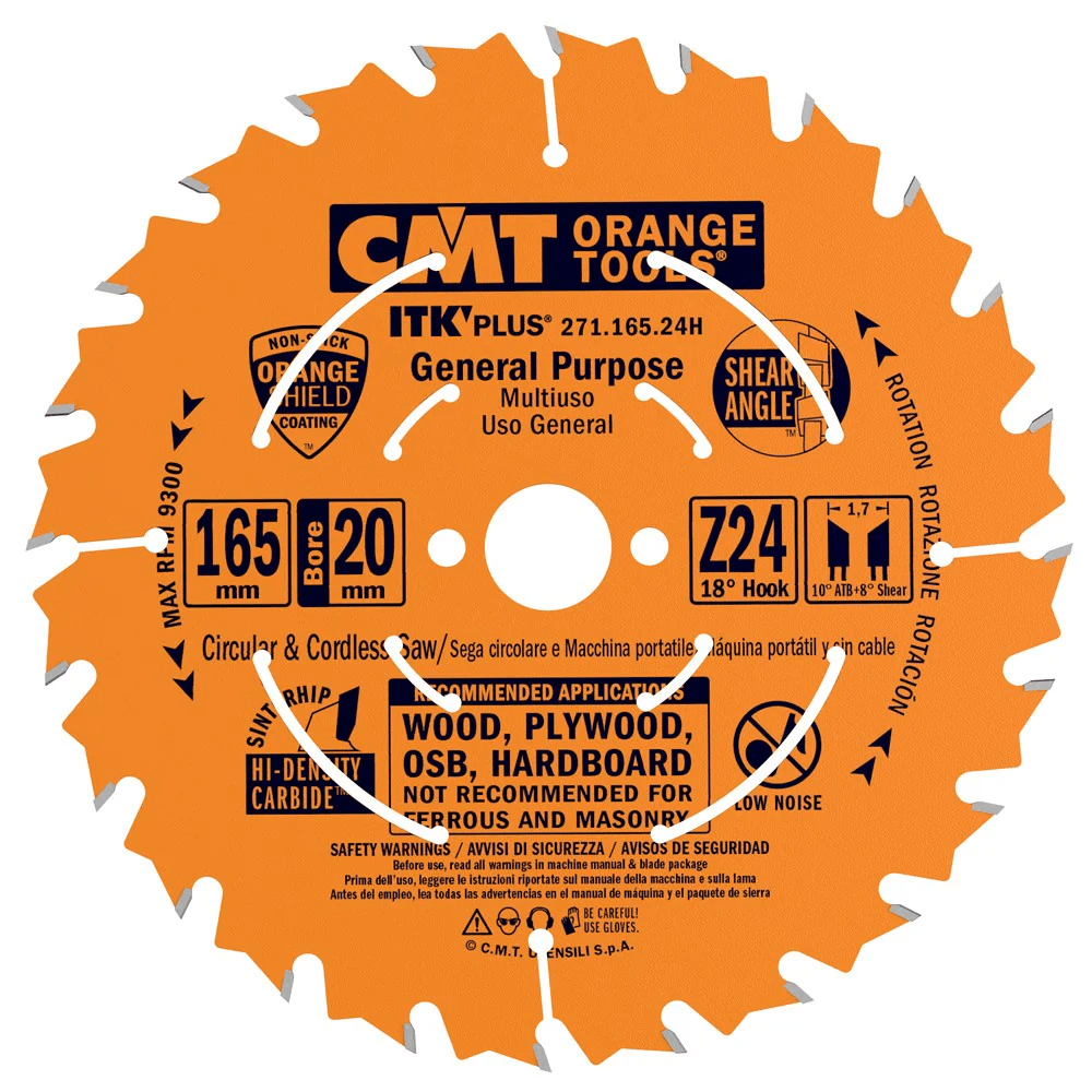 Sagarblað 165mm 20mm z24 Tritob fyrir skurð í við; staðfestu gat og hámarkshraða áður en þú setur í vél.