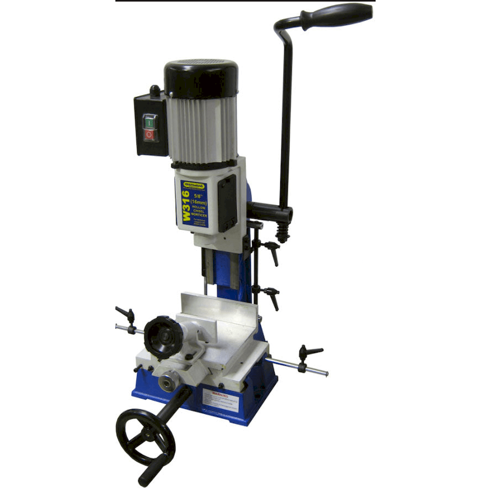 Hulsuborvél Charnwood W316 5/8 tommu með renniborði, 375 W mótor og chisel capacity 1/4″–5/8″.