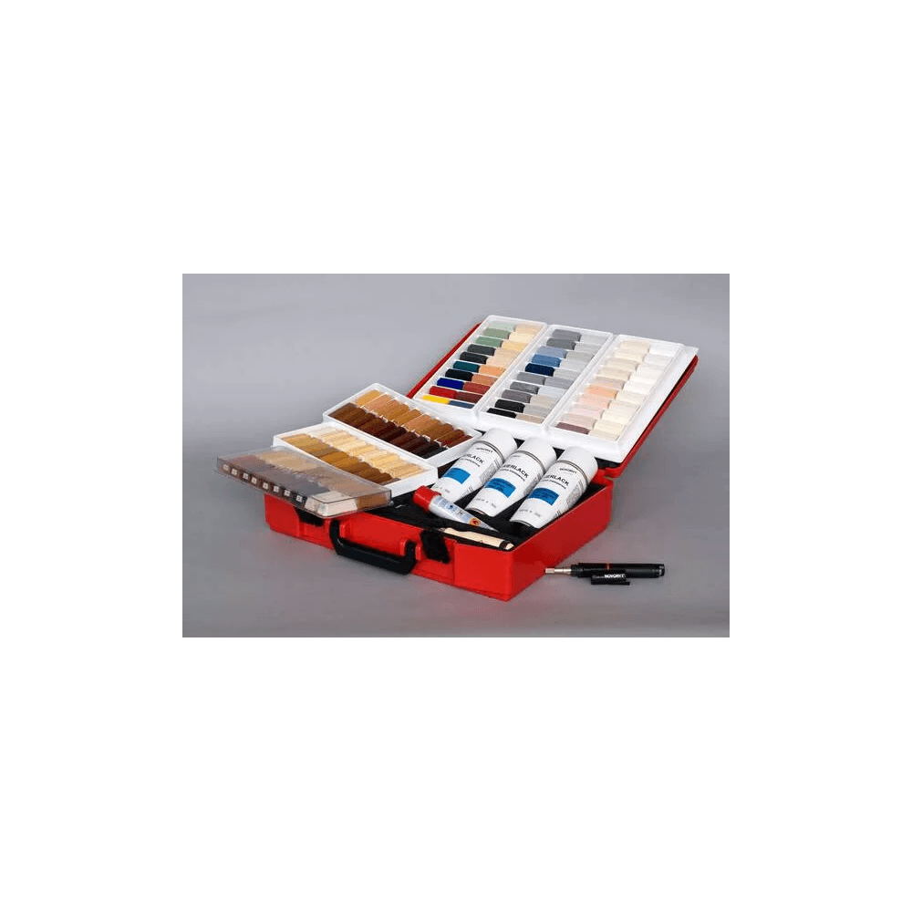 novoryt viðgerðarsett a 100 stk er viðgerðarsett fyrir smáviðgerðir á yfirborðum, t.d. húsgögnum og plötuefnum.