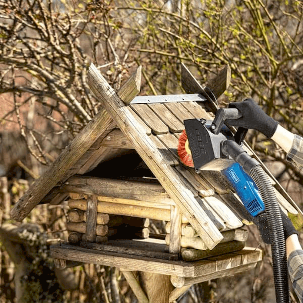 Nylon wire wheel Scheppach bursta-hjól fyrir hreinsun og yfirborðsvinnu. Sjá umbúðir.