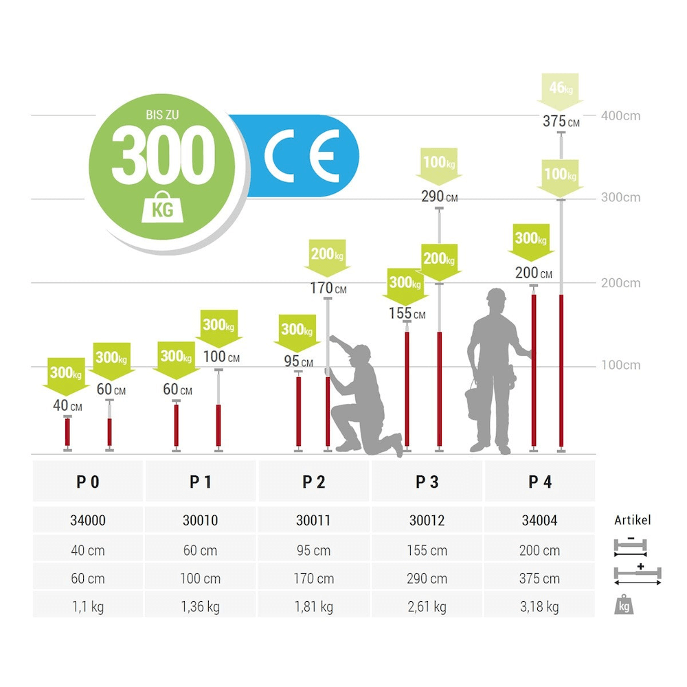 Piher stillanleg undirstoð 40–60 cm. Hentar sem stuðningur undir vinnustykki þar sem minni hæð dugar.
