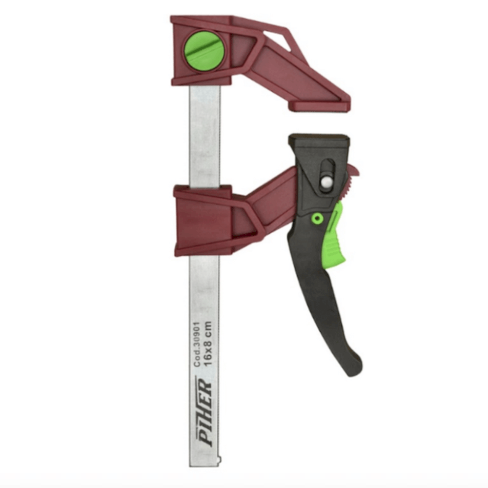 Piher þvinga 30x8 cm. Þægileg almenn þvinga fyrir verkstæði og samsetningar.