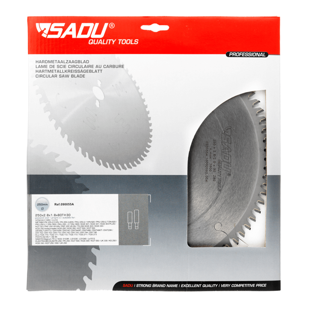 Álsagarblað 216mm z60 SADU er hjólsagarblað fyrir snyrtilegan skurð í áli, en miðjugat þarf að staðfesta á umbúðum (álsagarblað 216mm z60 sadu).