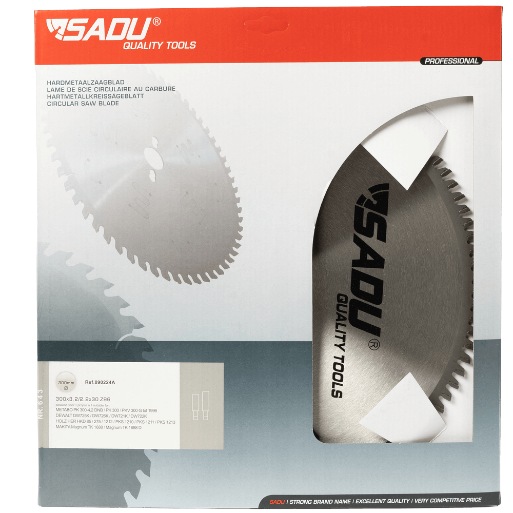 Álsagarblað 300mm z96 SADU er hjólsagarblað fyrir fínan skurð í áli og mjúkum málmum, en miðjugat þarf að staðfesta á umbúðum (álsagarblað 300mm z96 sadu).