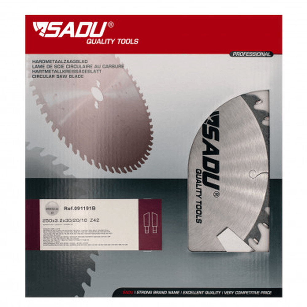 Hjólsagarblað 250mm z24 SADU er grófara sagarblað fyrir afköst í borðsögum og öðrum föstum vélum, en miðjugat þarf að staðfesta á umbúðum (hjólsagarblað 250mm z24 sadu).