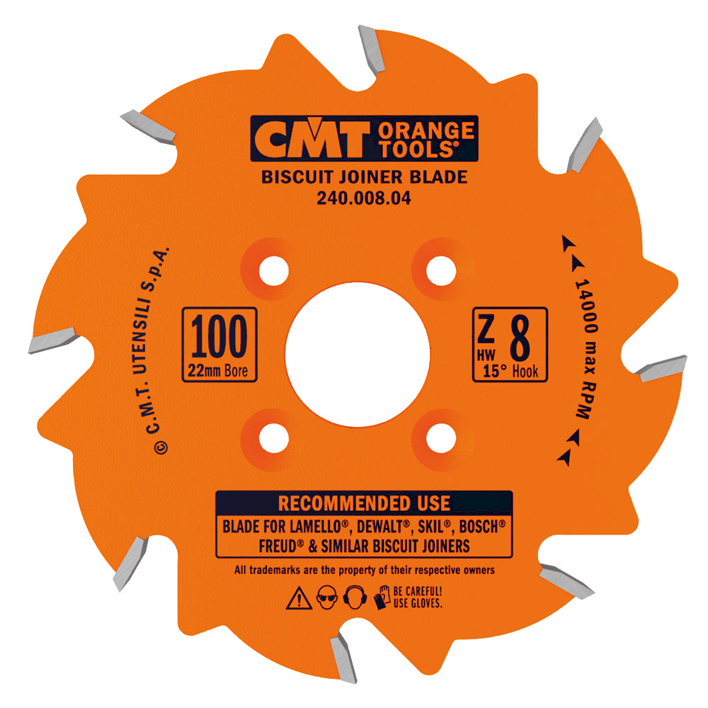 Biscuit joiner blað 100mm 22mm z8 er sagarblað fyrir raufir og föls í biscuit joiner/lamelló-sög.
