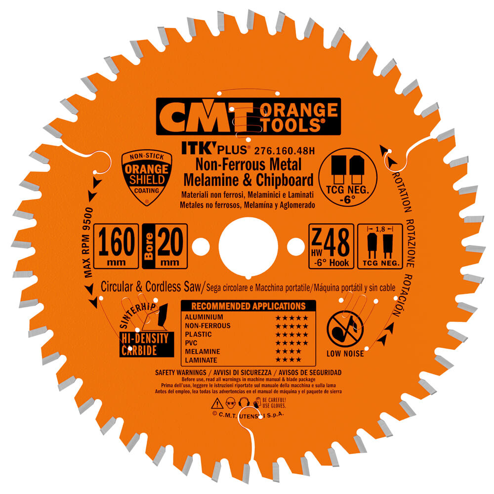 Sagarblað 160mm 20mm z48 tcg -6° fyrir fínan álskurð; stilltu framrás/hraða til að minnka upphleðslu.