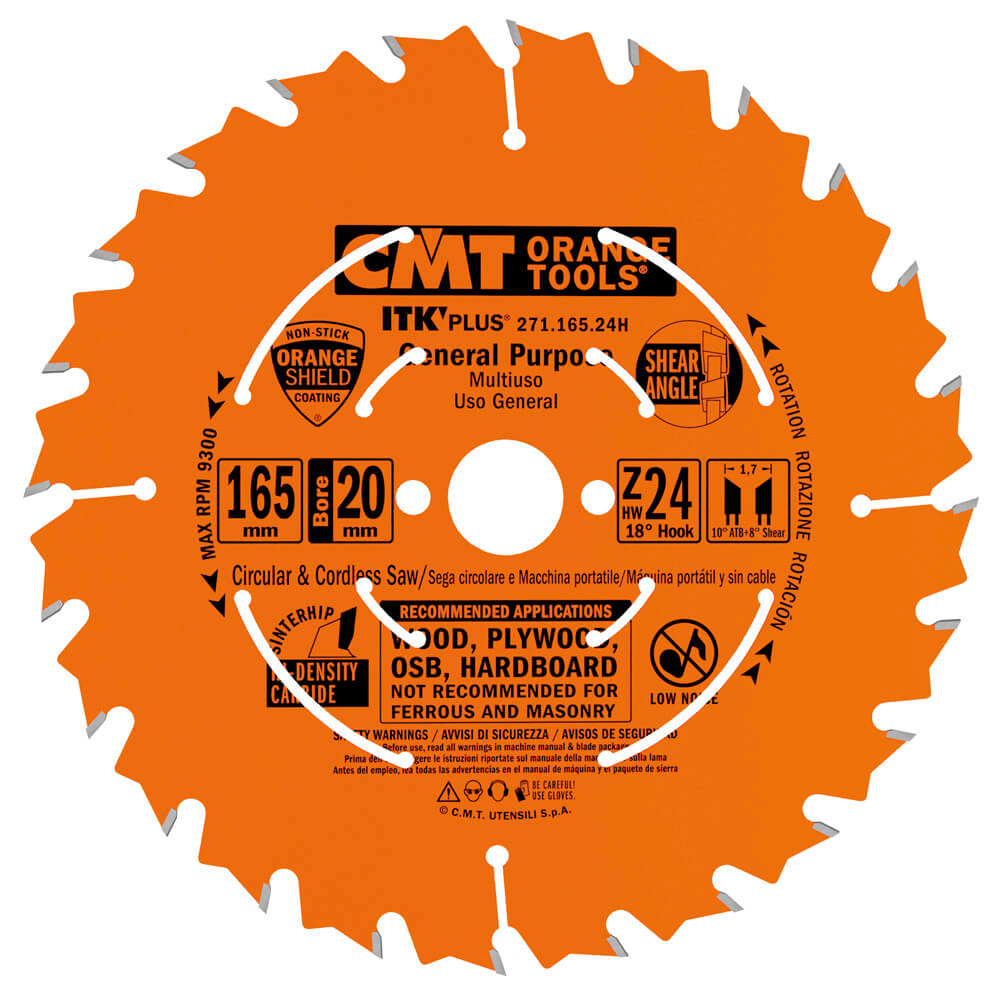 Sagarblað 165×20 mm með Z24 tönnum (sagarblað 165mm 20mm z24 rip & crosscut) er ætlað fyrir skurð þar sem þessi mál eiga við.