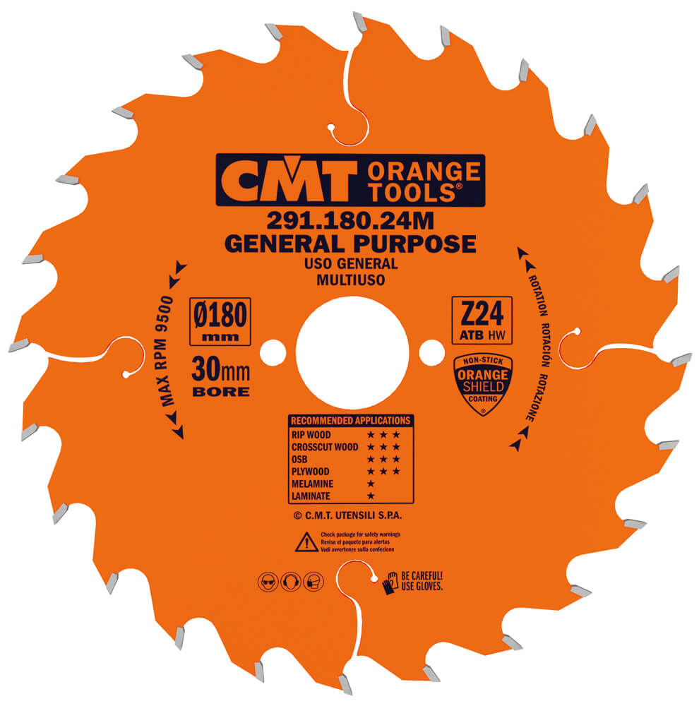 Sagarblað 180mm 30mm Z24 alhliða (sagarblað 180mm 30mm z24 alhliða 2.4mm cmt) er sagarblað með málum og tannafjölda sem koma fram í vörunafni. Sagarblað er alhliða blað fyrir almenna vinnu í tré og plötuefni eftir útfærslu.