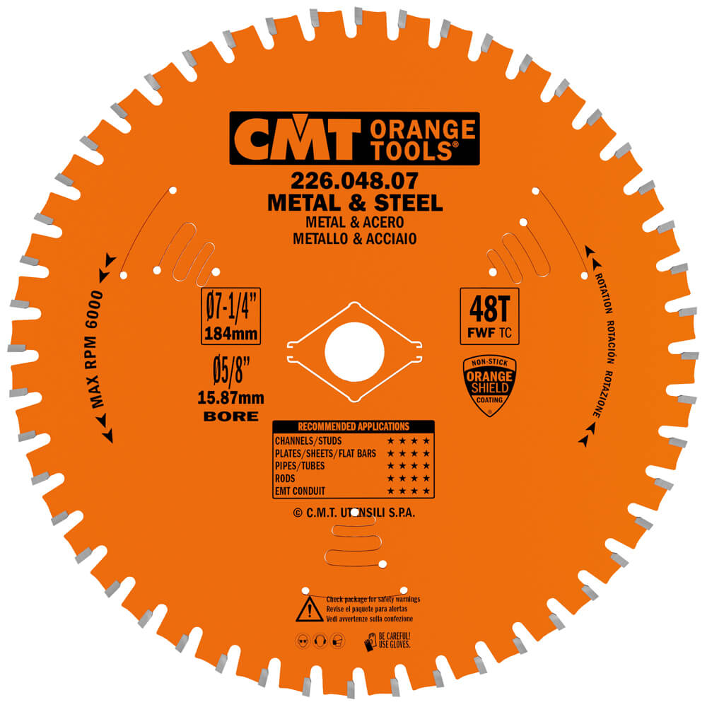 Sagarblað 184mm 15,87mm z48 fyrir stál 1,6–2,0mm; staðfestu hámarkssnúning og notkun á umbúðum.
