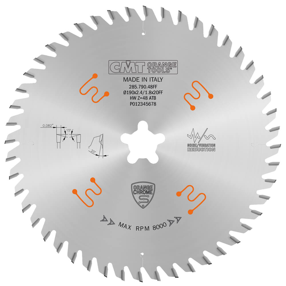 Sagarblað 190mm 20mm z48 2.4mm atb 8/15° orcr er hjólsagarblað með þvermáli 190 mm og miðjugati 20 mm, fyrir notkun þar sem þessi útfærsla á við.