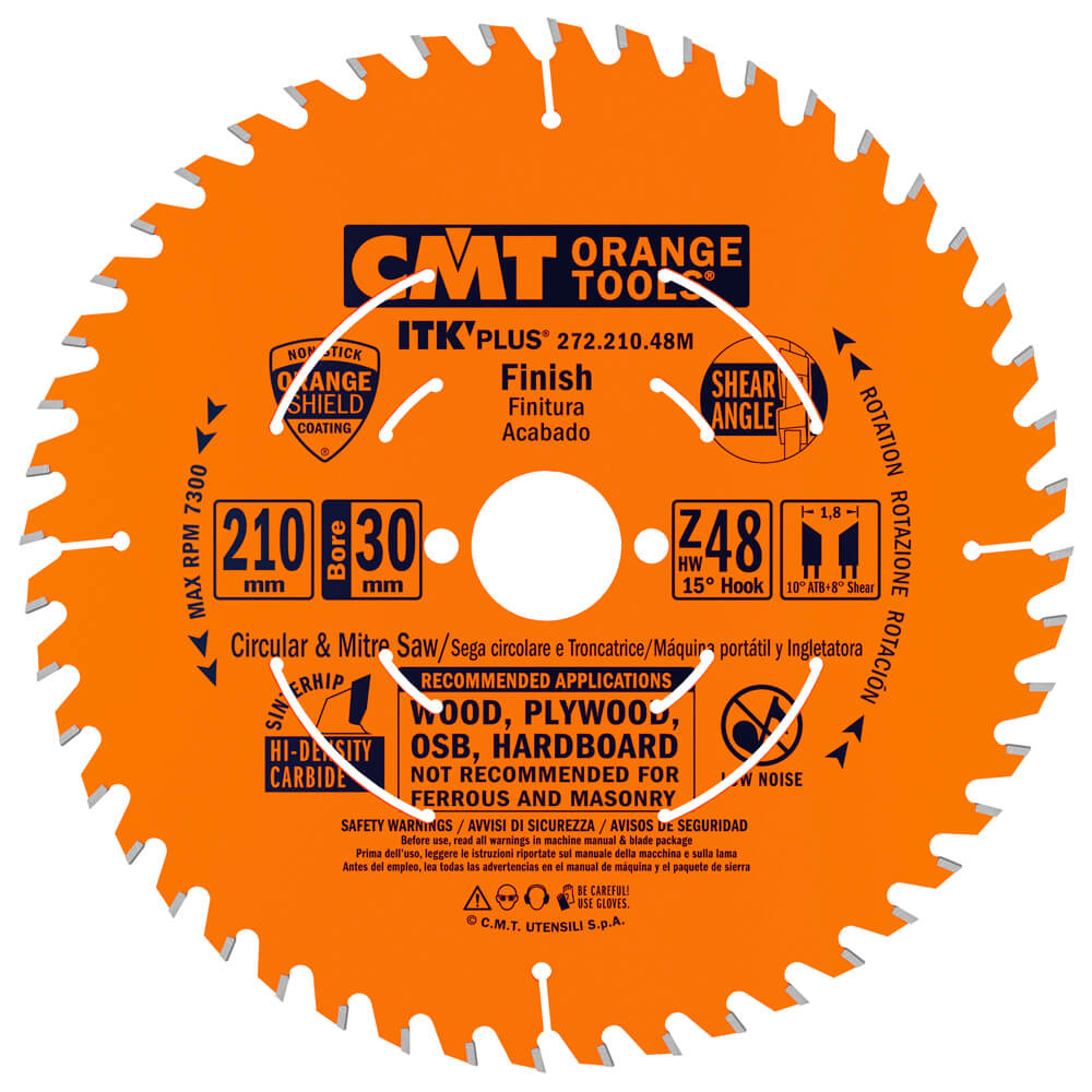Sagarblað 210×30 mm með Z48 tönnum (sagarblað 210mm 30mm z48 atb 15°) er ætlað fyrir skurð þar sem þessi mál eiga við.