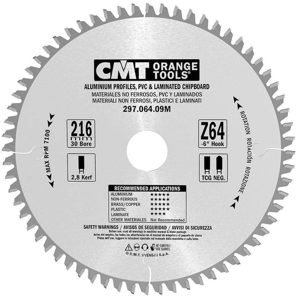 Sagarblað 216mm 30mm z64 fyrir fínan skurð í áli og plötuefni; athugaðu kerf og krókshorn.