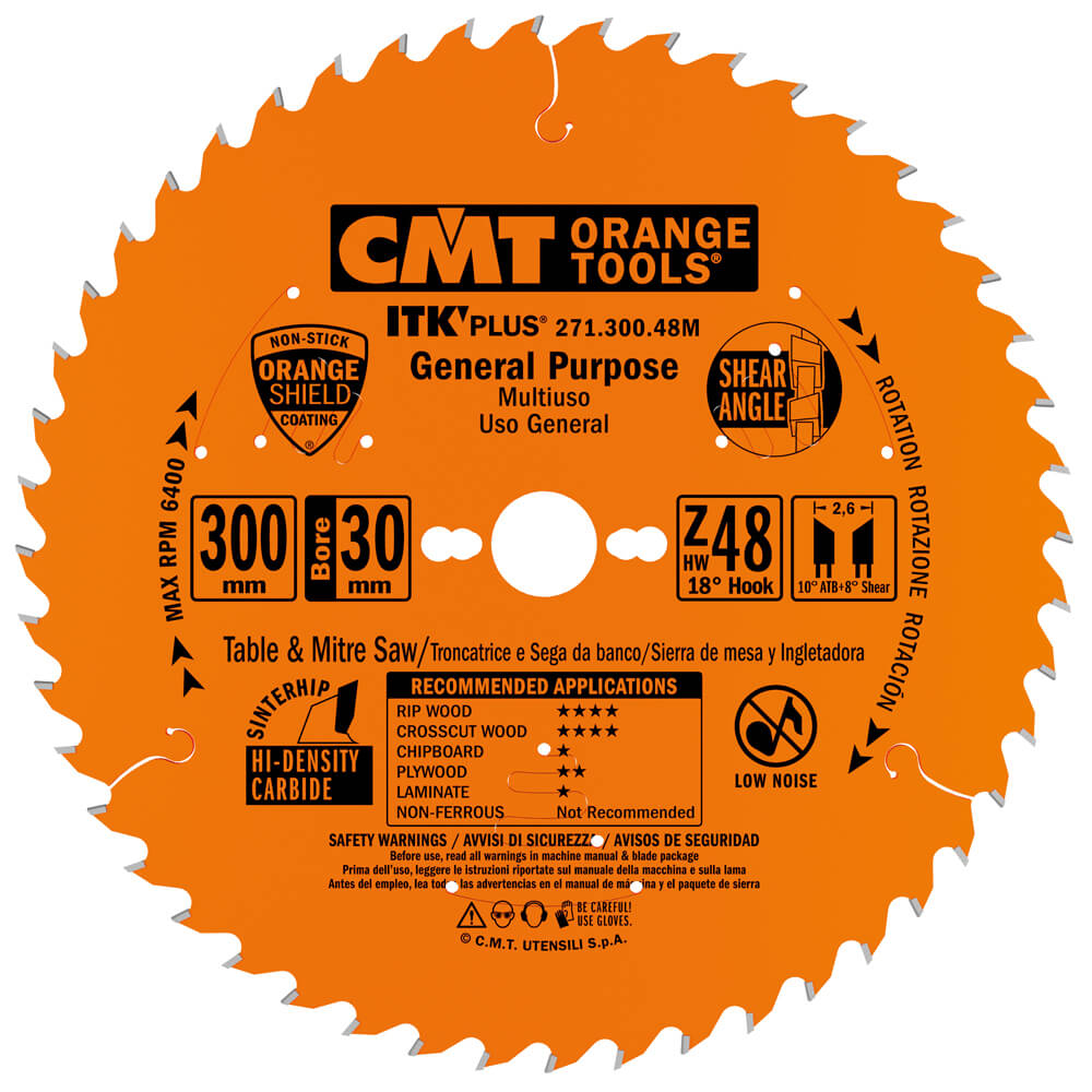 Sagarblað 300mm 30mm z48 fyrir risti og þverskurð; athugaðu miðjugat og hámarkssnúning og stilltu framrás eftir efninu.