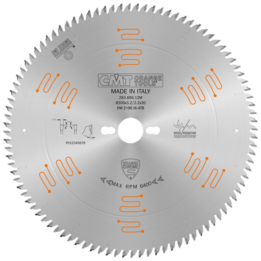 Sagarblað 300mm 30mm Z96 ATB 2°/38° OrCr er hjólsagarblað með mjög háum tannafjölda fyrir mjög snyrtilegan frágang þar sem ATB á við (sagarblað 300mm 30mm z96 atb 2°/38°).