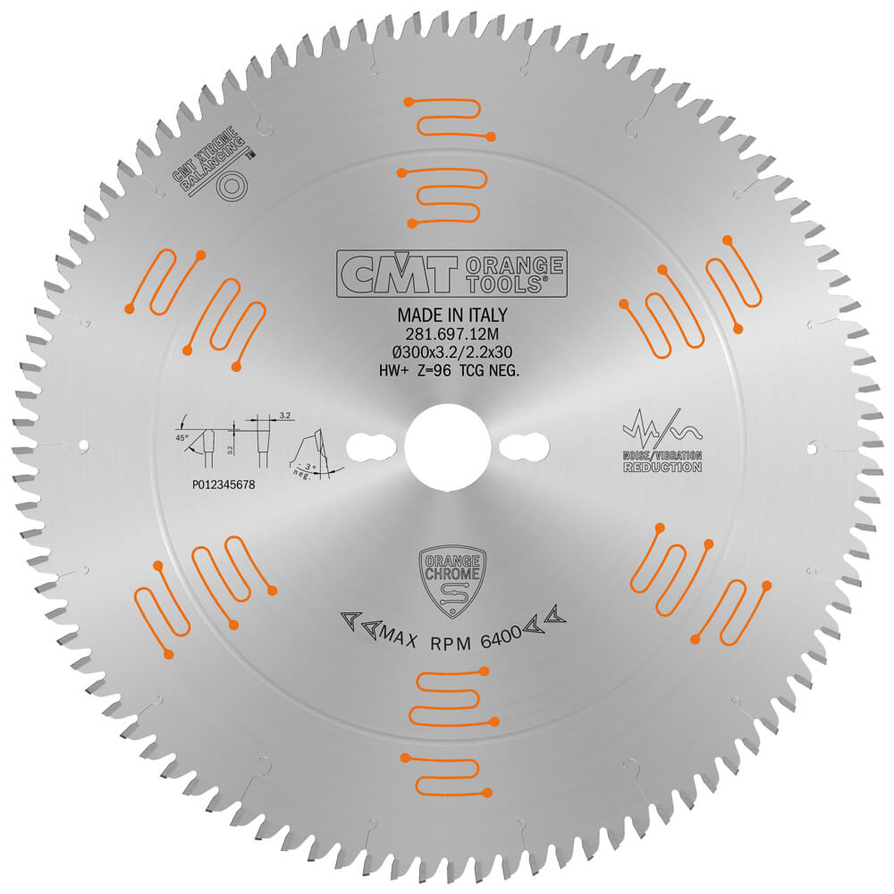 Sagarblað 300mm 30mm Z96 TCG -3° EXB fyrir snyrtilegan skurð; athugaðu hámarkssnúning og hreinsaðu flansa (þrýstiplötur).