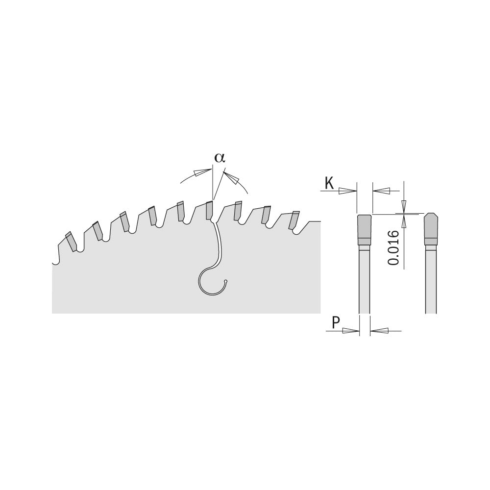 - Tannform að öðru leyti, blaðþykkt og hámarkssnúningur: Sjá umbúðir.