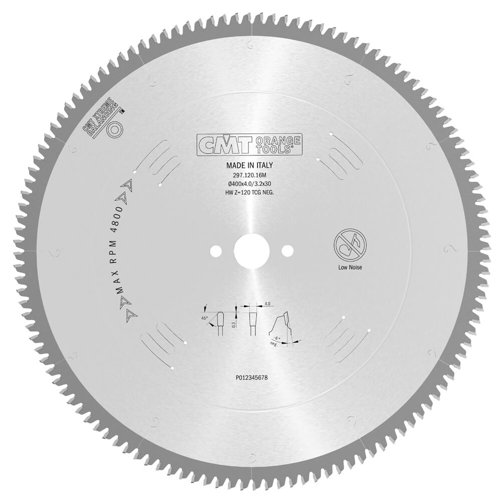 Sagarblað 400mm 30mm z120 fyrir fínan skurð í áli og plötuefni; athugaðu kerf og krókshorn.
