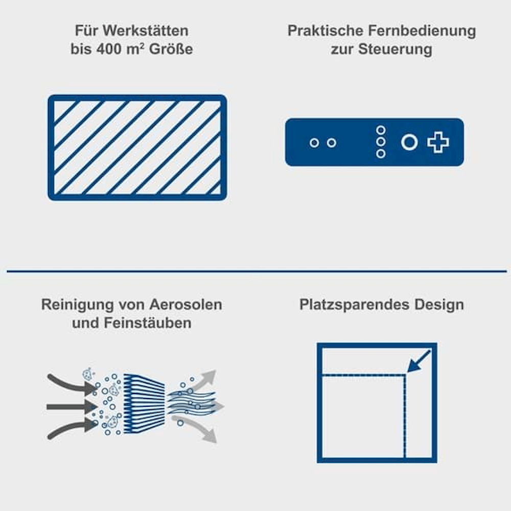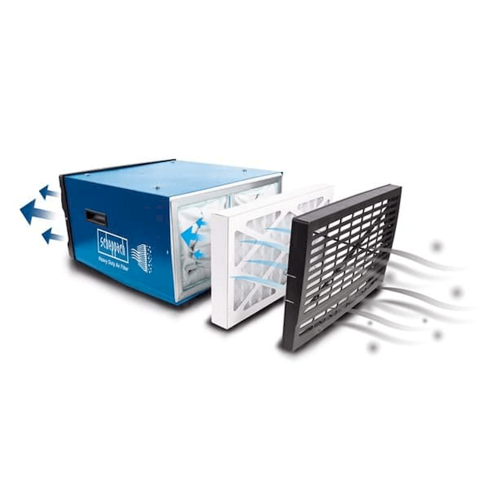 Lofthreinsari Scheppach HDA-14 er lofthreinsari fyrir verkstæði þar sem draga þarf úr svifryki, fíngerðu ryki og úða í lofti meðan unnið er.