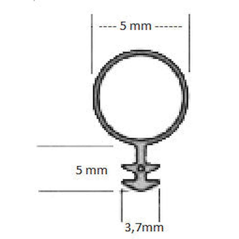 Siliconlisti O 5mm svartur með 3mm spori. Selst í rúllu (1/150 m samkvæmt skrá). Hentar vel í rauf/snið þar sem listinn þarf að sitja í spori.