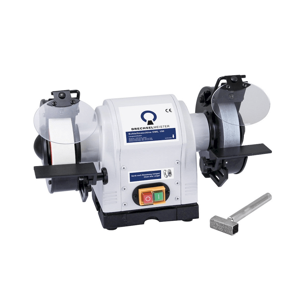 Smergel Drechselmeister DML150 með 1450 snún./mín, tveimur 150 x 40 mm skífum og 370 W mótor fyrir brýningu renniverkfæra.