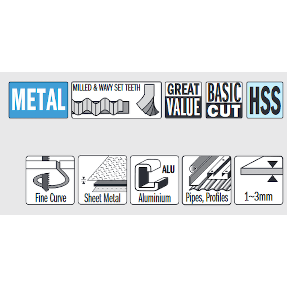 stingsagarblöð basic flex cut málm 1-3mm fyrir stingsög; athugaðu skaftgerð og upplýsingar á umbúðum.