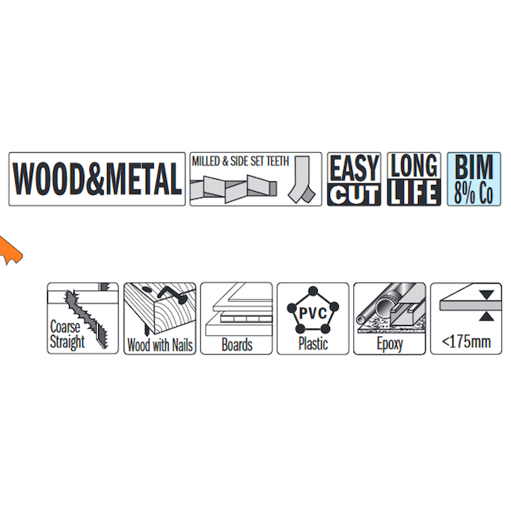 Sverðsagarblað 225mm timbur/málm. 6tpi