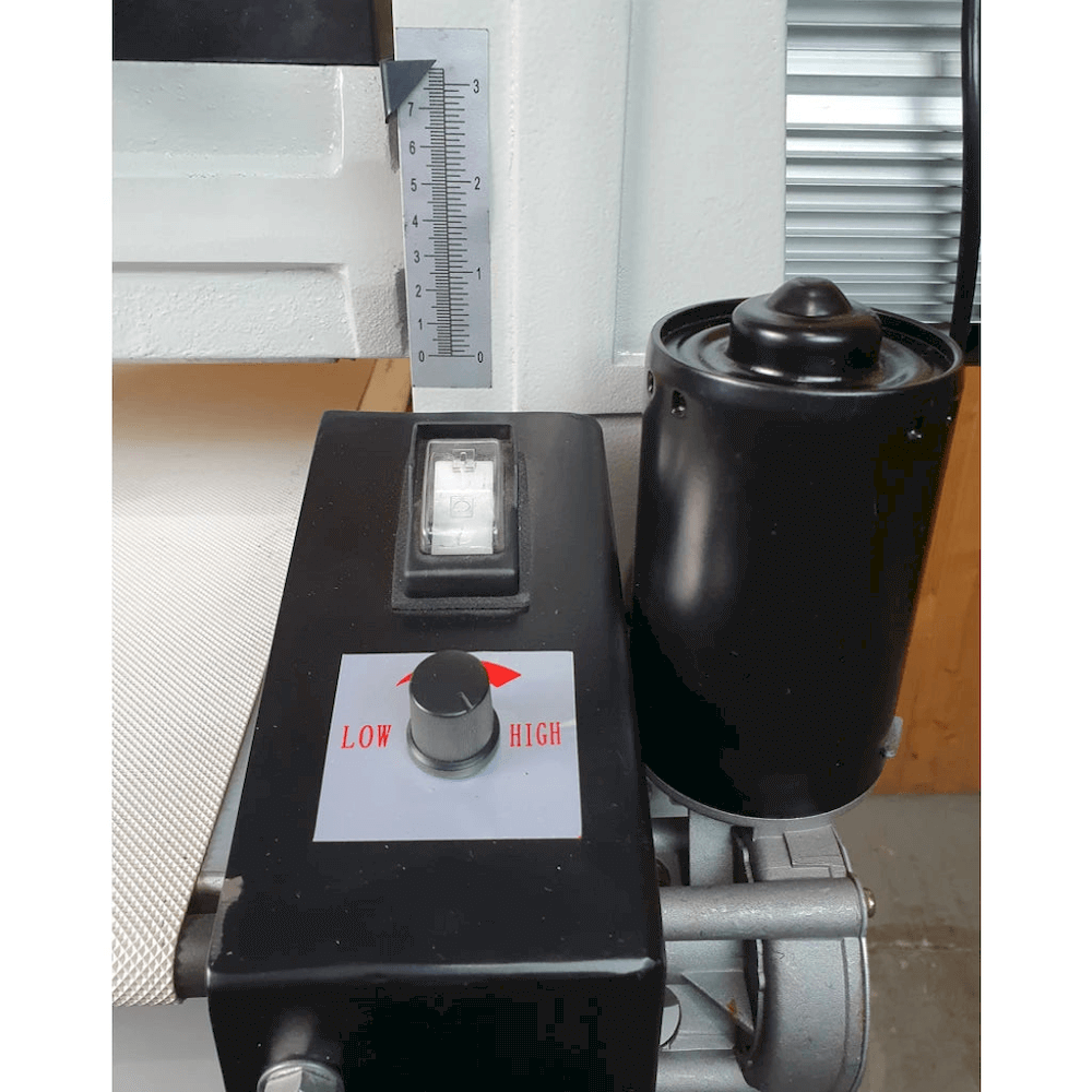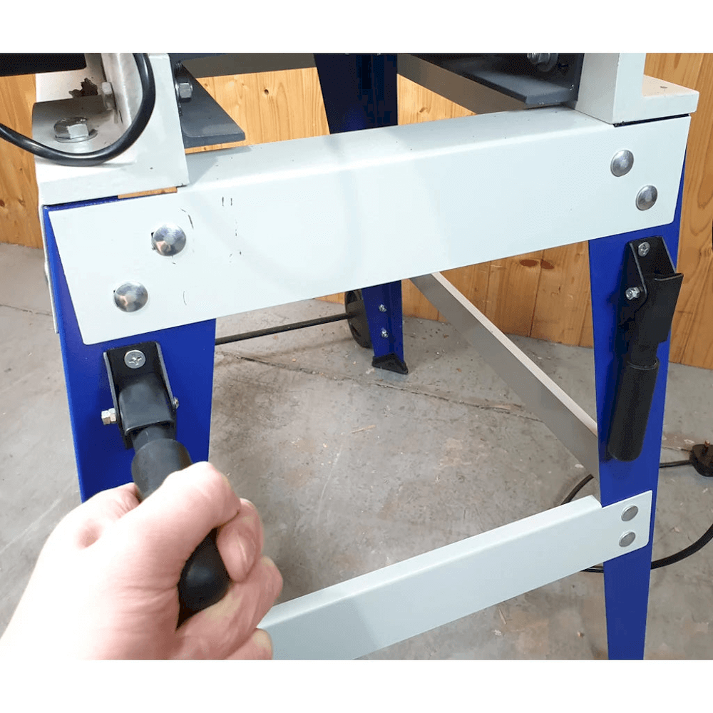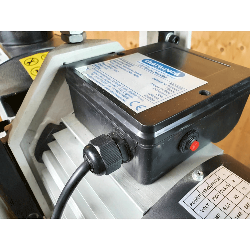 Þykktarpússivél Charnwood DS10/20 með 255 mm breidd í einni umferð, 505 mm í tveimur og 1100 W mótor.
