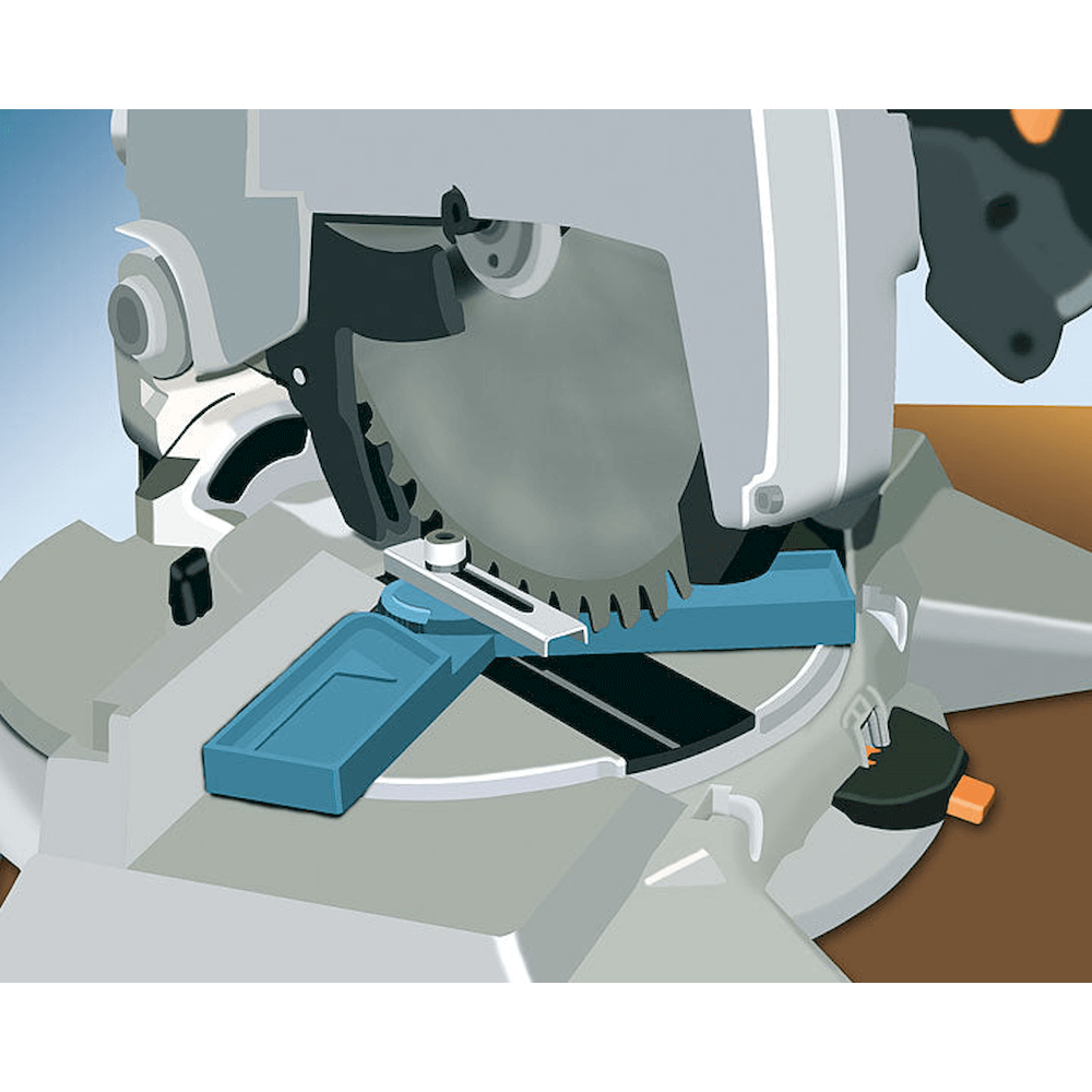 - Leggðu hornmát samsíða við stykkið og stilltu sög eftir leiðarbrúninni.